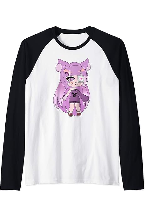 Amazon Com Cute Chibi Style Neko Cat Girl With Green Hair And Long Tail Raglan Baseball Tee Clothing Shoes Jewelry